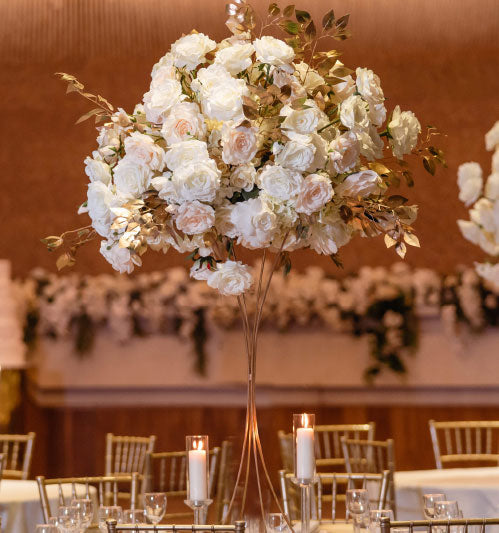 silk flowers coupled with gold foliage highlights
